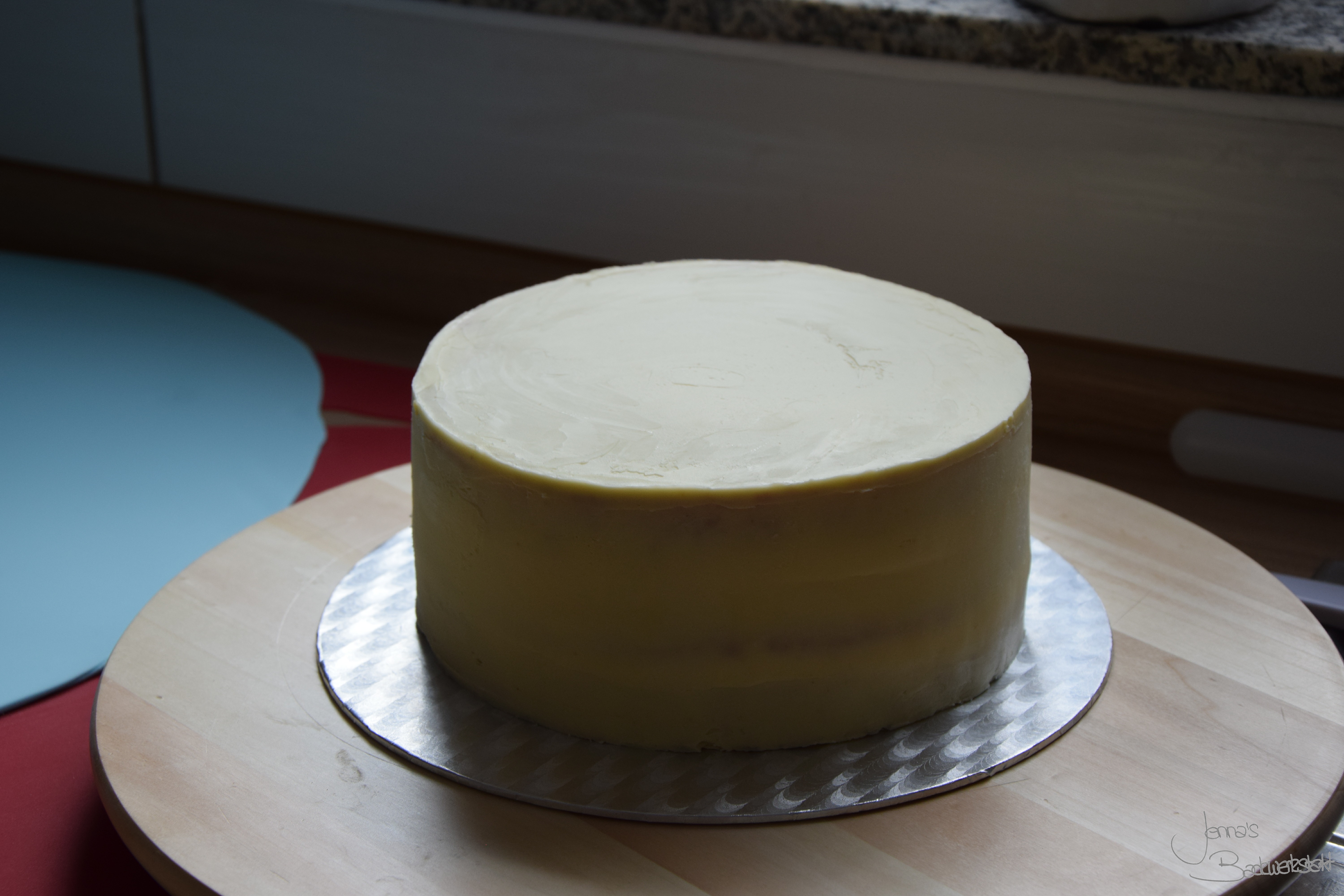 Torte mit Ganache eingestrichen und gekühlt