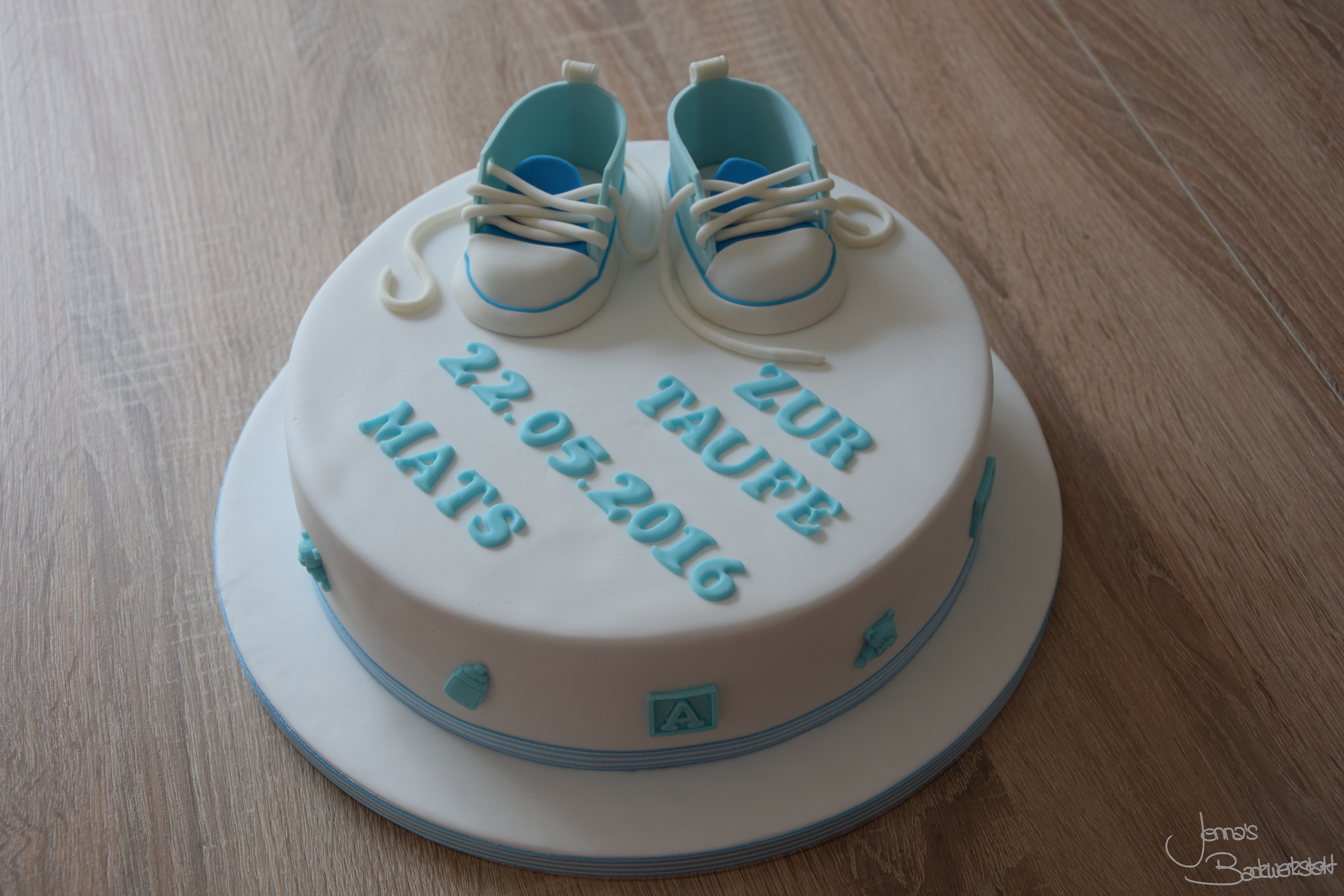 Tauftorte mit Babyschuhe