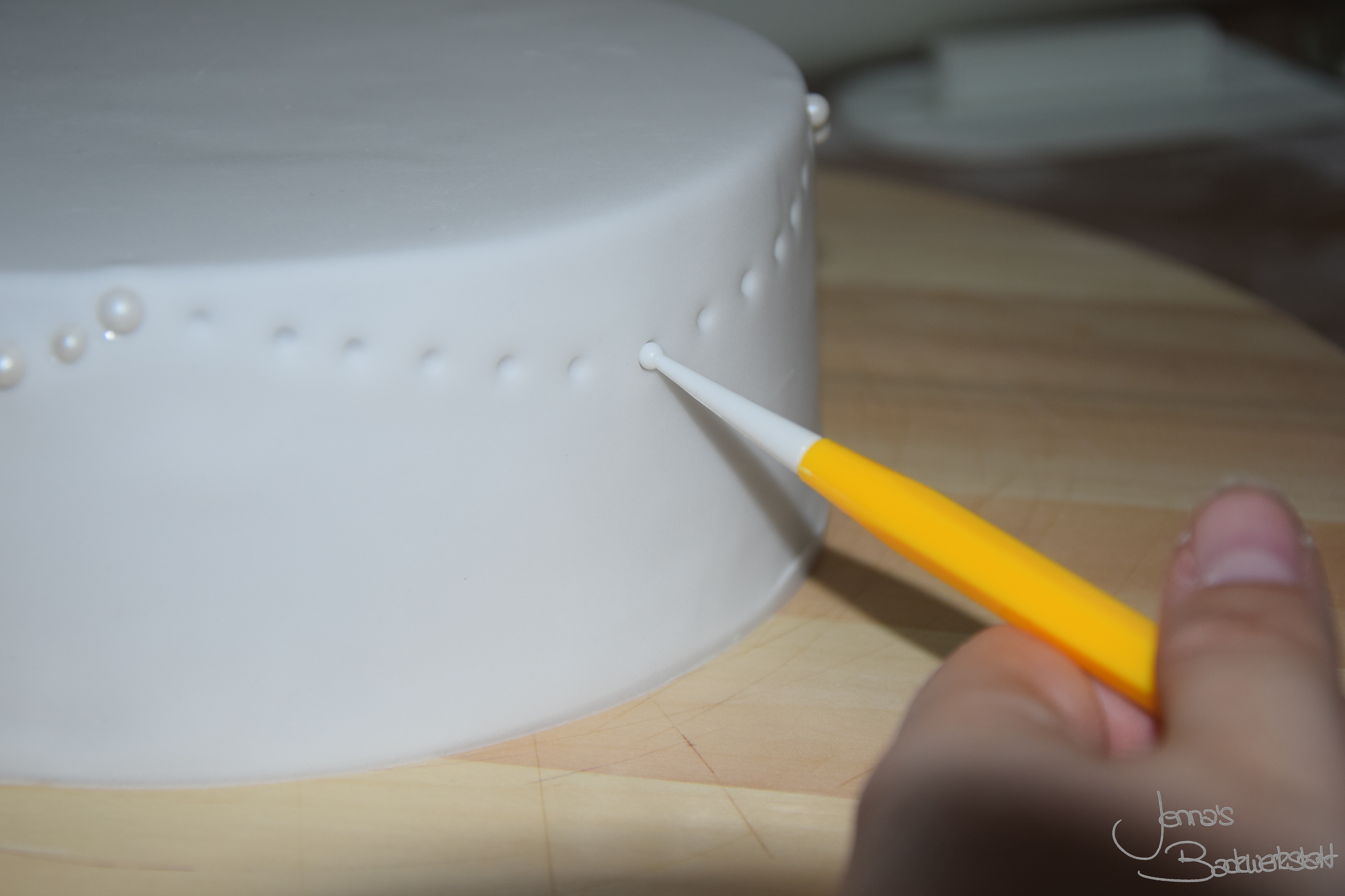 Zweistöckige Torte mit Perlen und Rosen