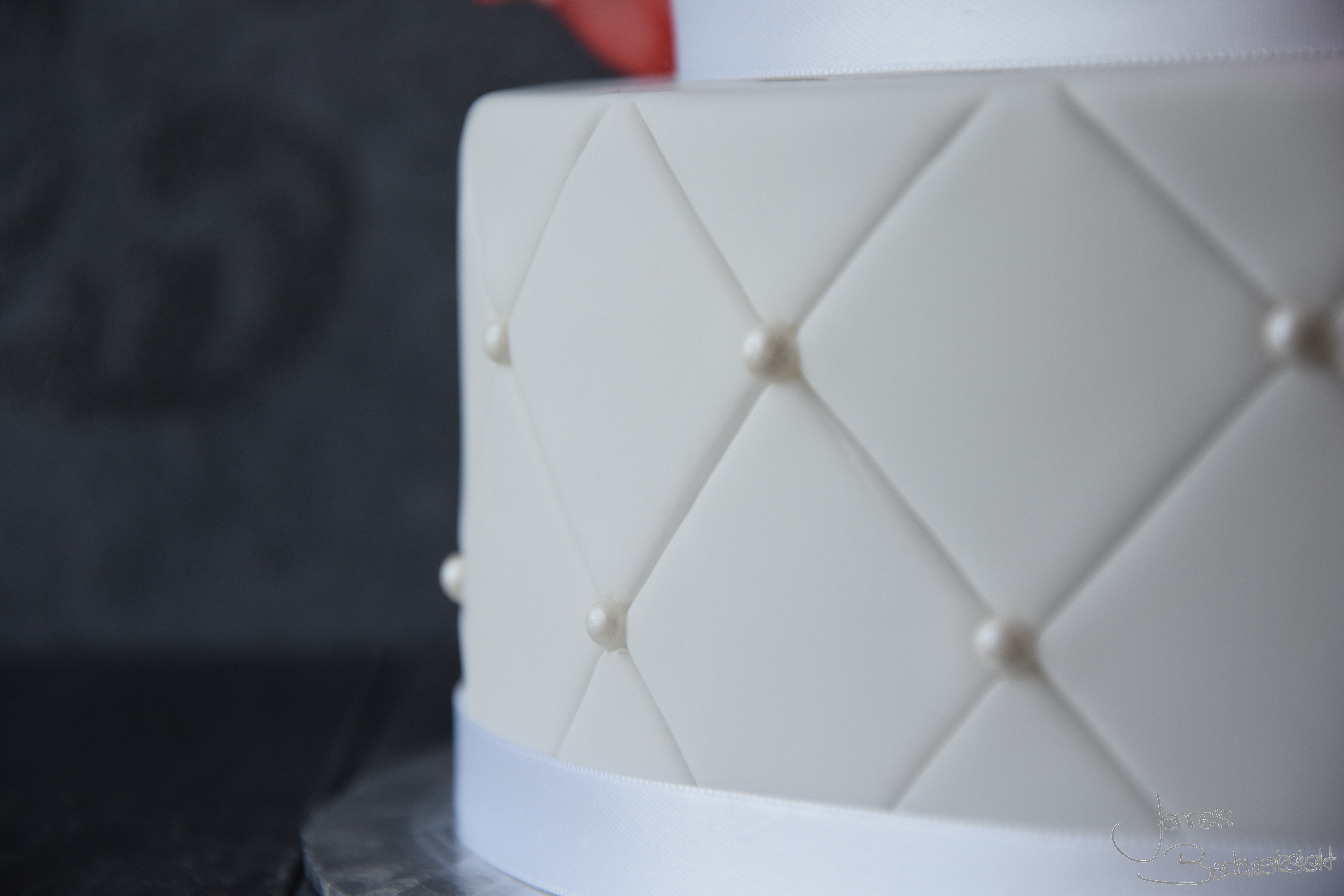 Zweistöckige Torte mit Perlen und Rosen